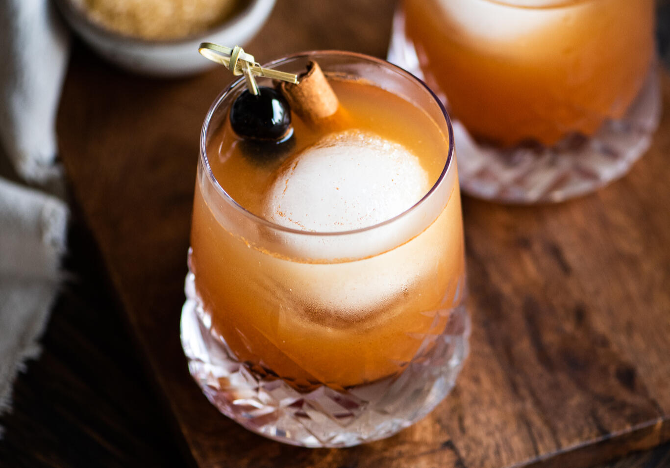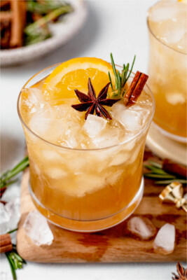 Cinnamon-ginger simple syrup and apple cider. Shake over ice and strain. Run the glass with cinnamon sugar and garnish with an apple slice or a cinnamon stick. Prepare for the warm heat of a familiar hearth.