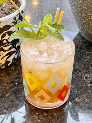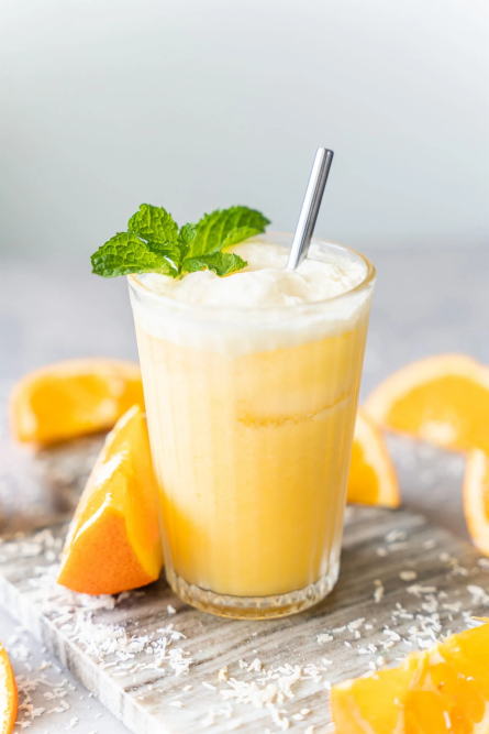 Orange juice, cream, and light syrup with a sprig of mint. Served over ice. Best enjoyed while thinking about summer vacation.